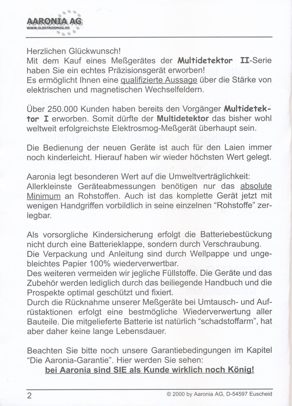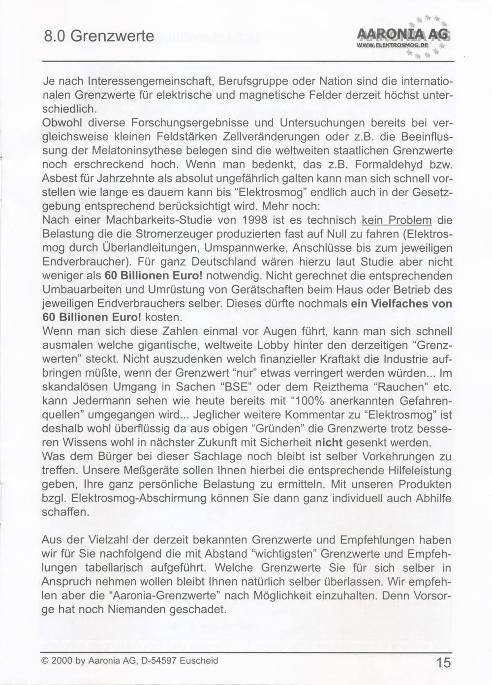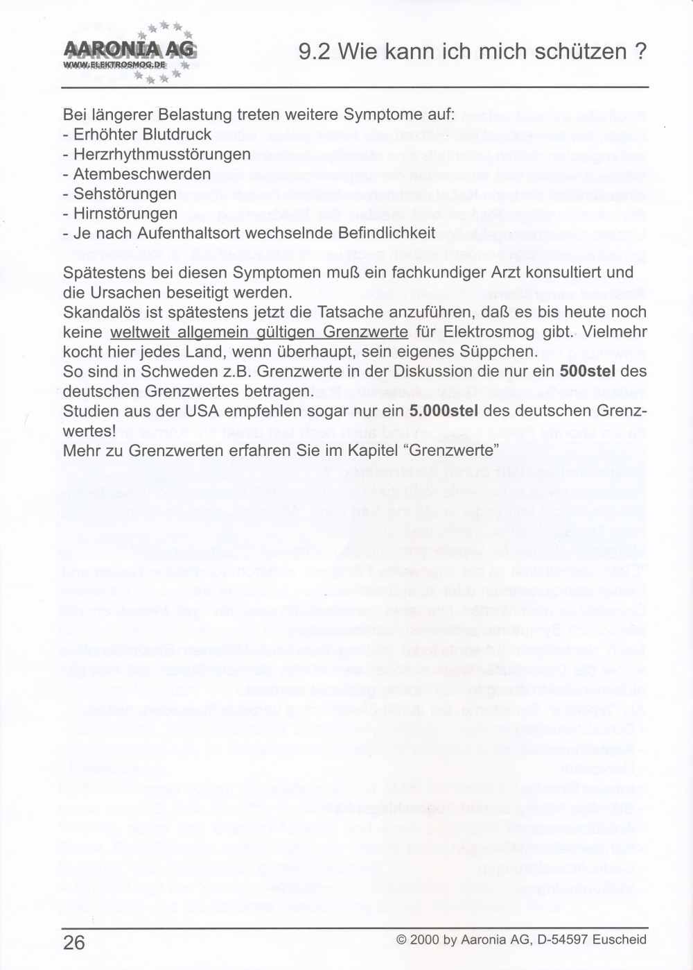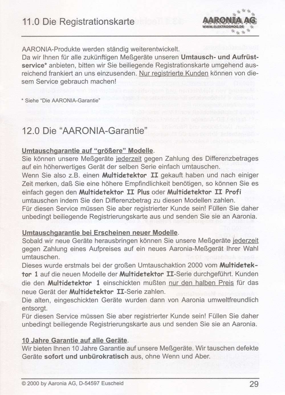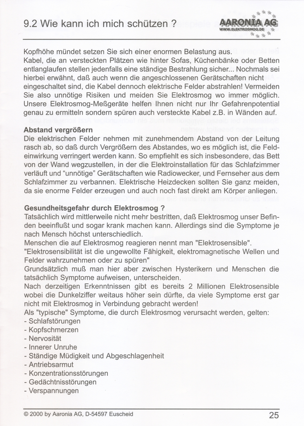 Messung elektrischer Felder in 4 Messbereichen: 0,1-1 V/m; 1-10 V/m; 10-100 V/m; 100-1000 V/m; beste Auflösung: 0,1 V/m;