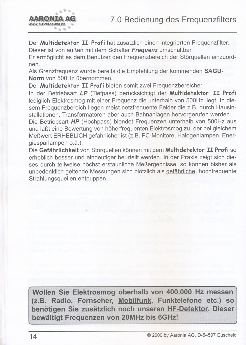 Frequenzbereiche: 5-500 Hz; 500-400.000 Hz.