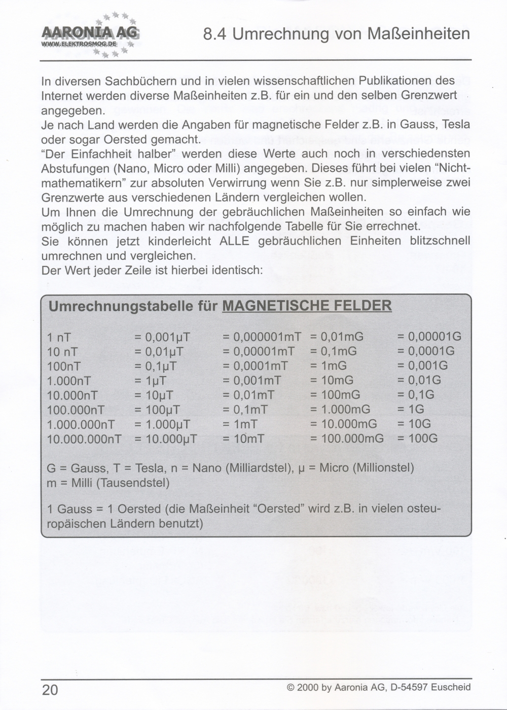 Mesurage des champs magnétiques dans 4 zone de mesure: 1-10 nT; 10-100 nT; 100-1000 nT; 1000-10000 nT; résolution: 1 nT;