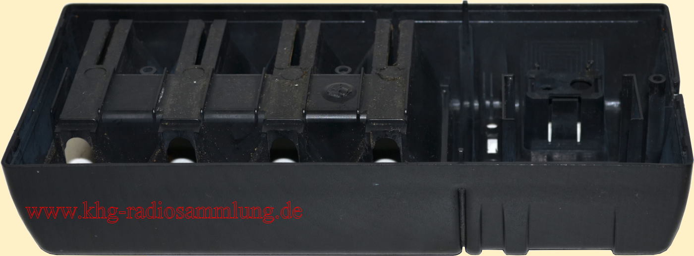 4 Schächte für Akkus in den Größen Mono (D), Baby (C), Mignon (AA) Micro (AAA); Anschluss für 9 V Akkus