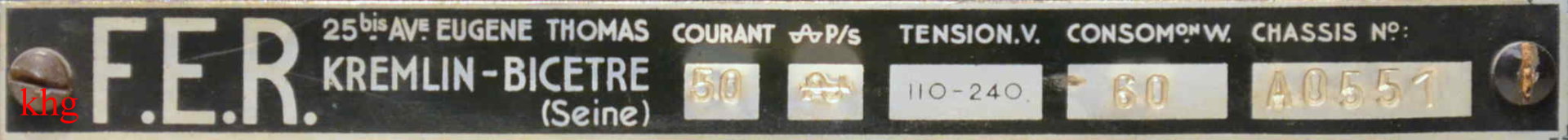 F.E.R., France Electro Radio - 161 A.N. - 1946