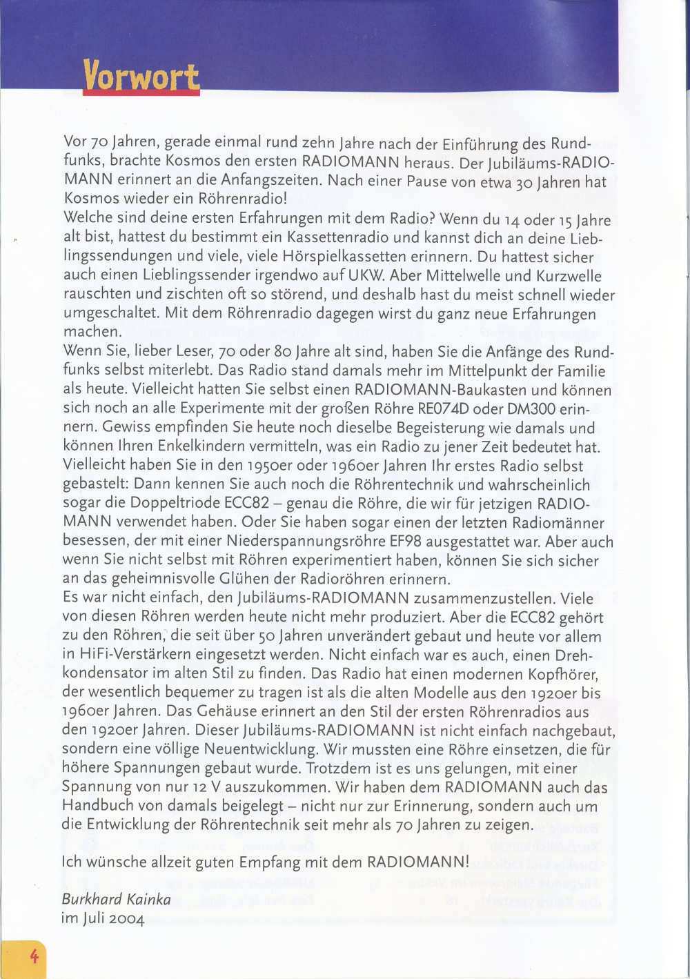 Kosmos - Radiomann ECC82 Jubiläumsausgabe - 2004