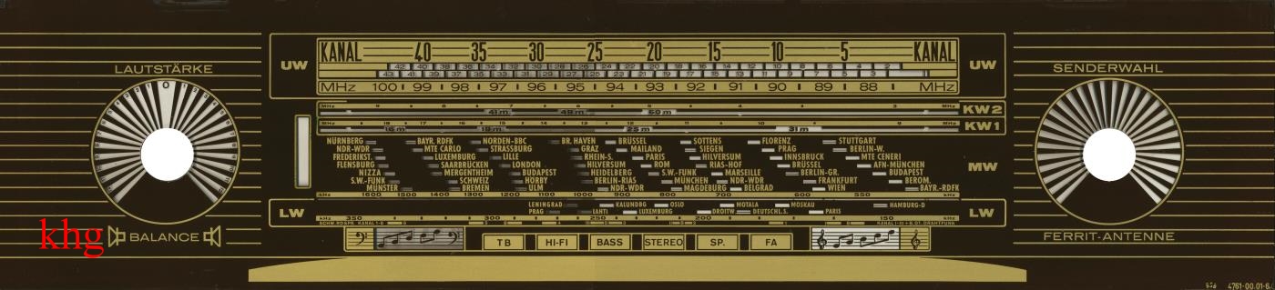 LW, MW, 2 × KW, UKW / LW, MW, 2 × SW, FM / GO, PO, 2 × OC, FM / OL, OM, 2 × OC, FM