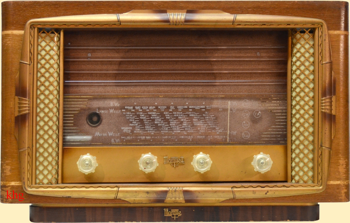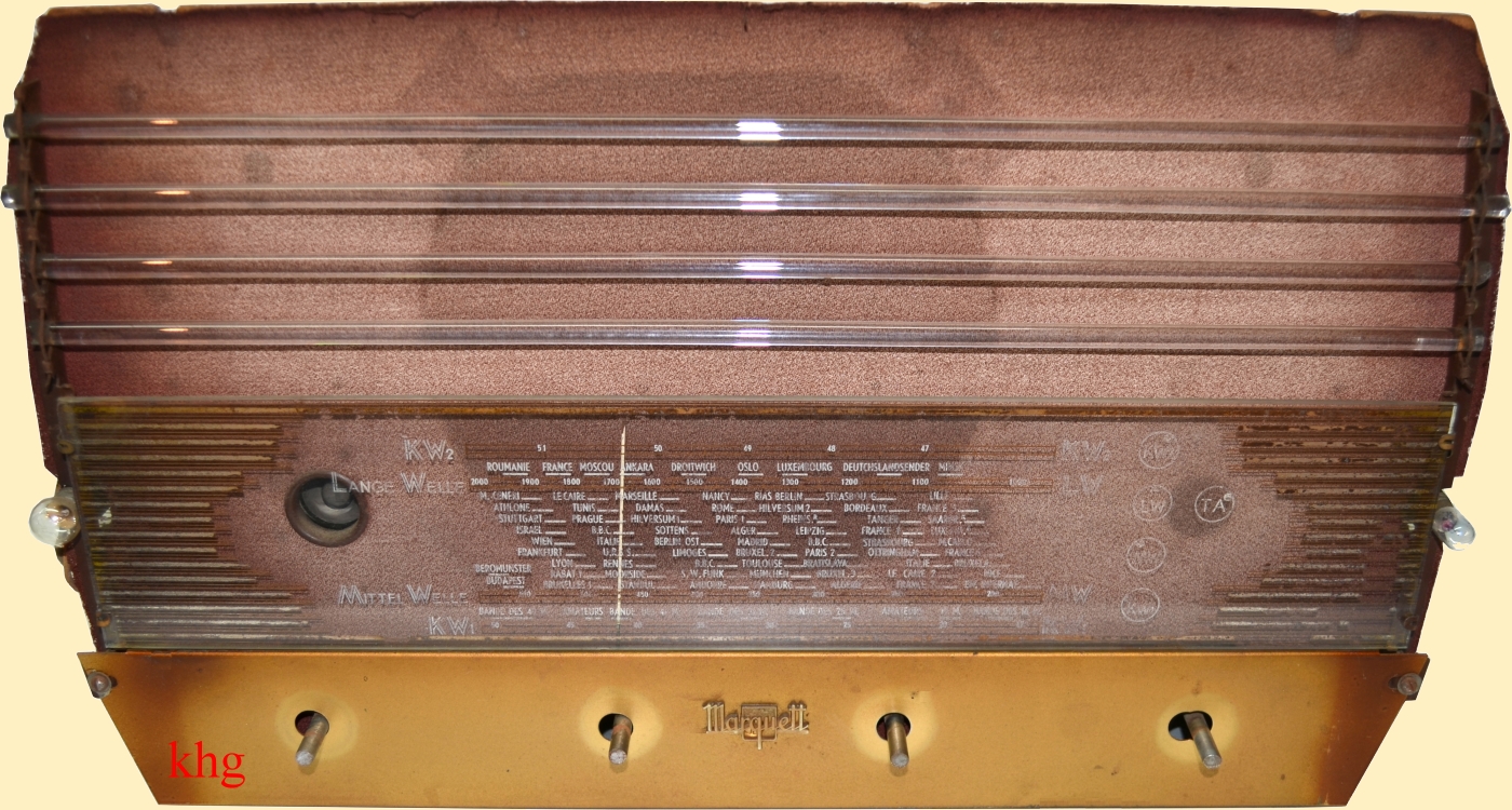 Gehäuse des Marquett 667, deutsche Skala, möglicherweise eine Sonderanfertigung für den saarländischen Markt.