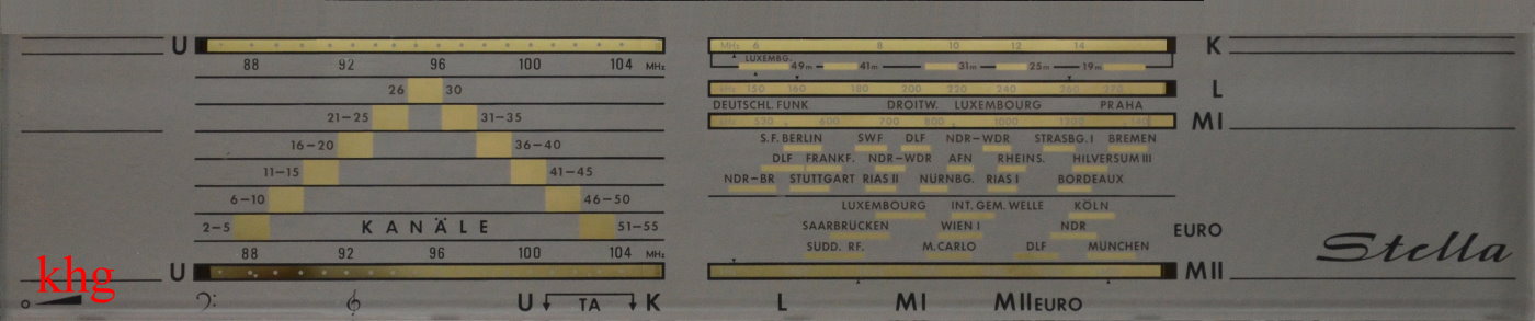 LW, 2×MW, KW, UKW / LW, 2×MW, SW, FM / GO, 2×PO, OC, FM /OL, 2×OM, OC, FM