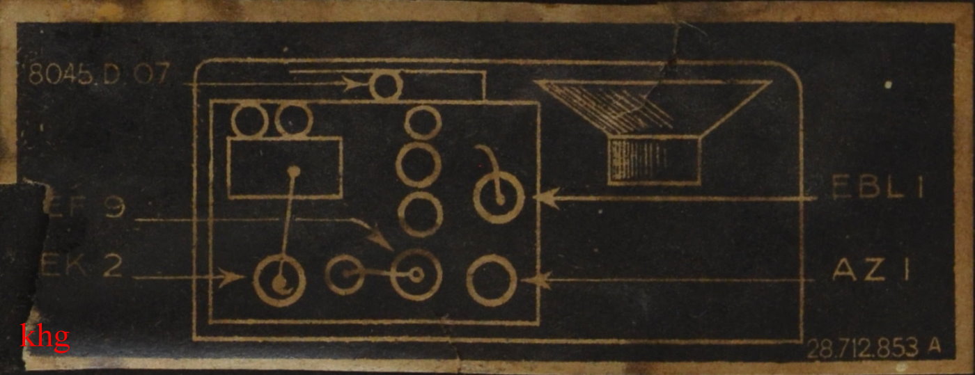 Röhren im Gerät / Tubes in the device / Lampes dans l'appareil / Tubos en el dispositivo: ECH3, EF9, ???, 6AQ5, 1883