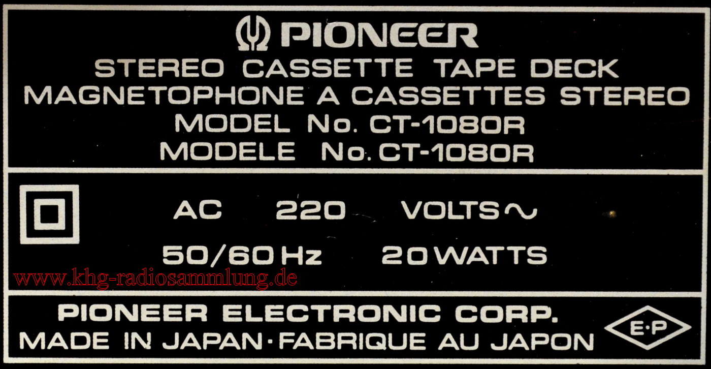 Pioneer - Stereo Cassette Tape Deck CT1080R - 1988 ?