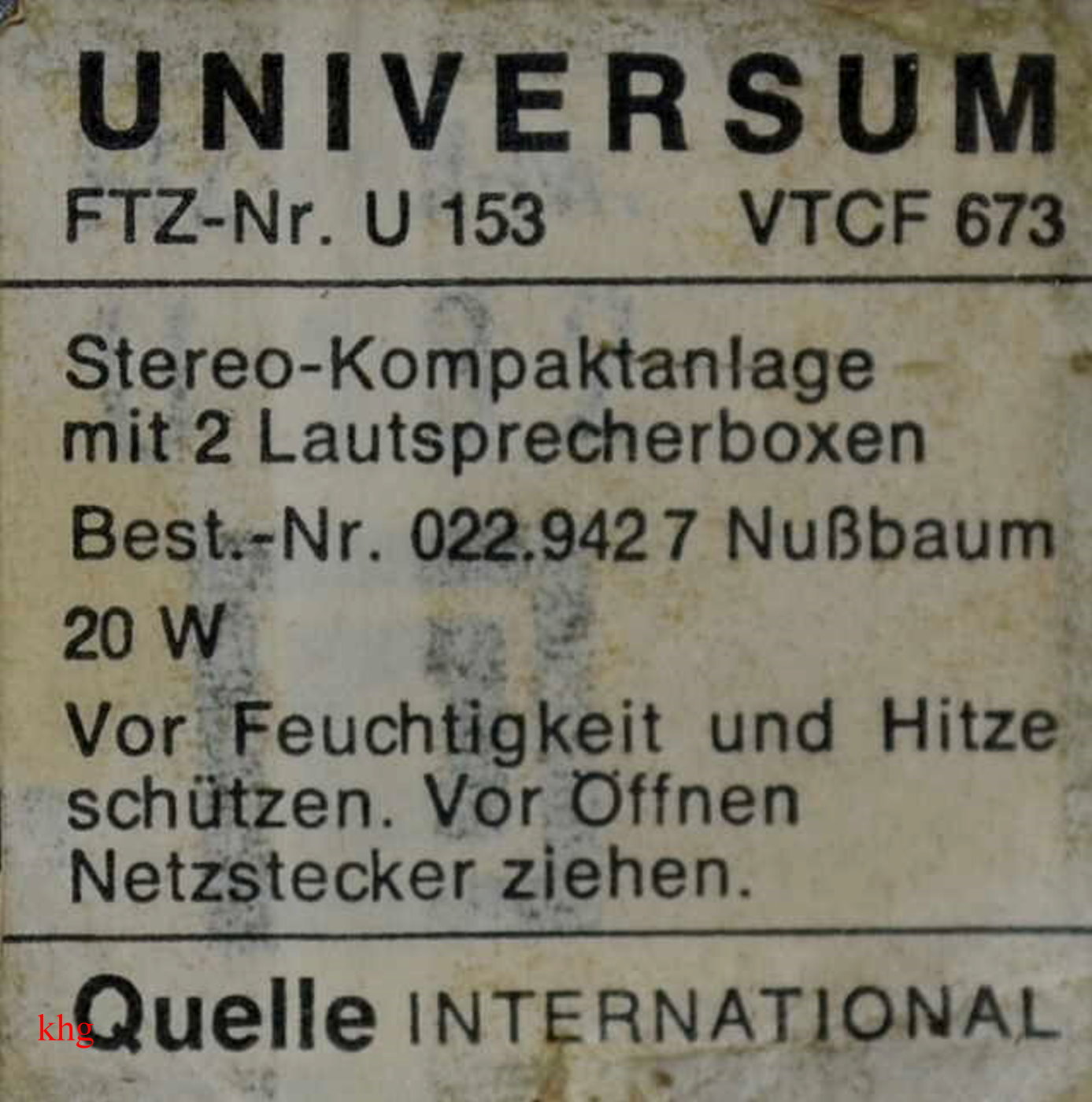 Quelle - Stereo Kompaktanlage VTCF673 Art. Nr. 022.9427 - 1975 ?