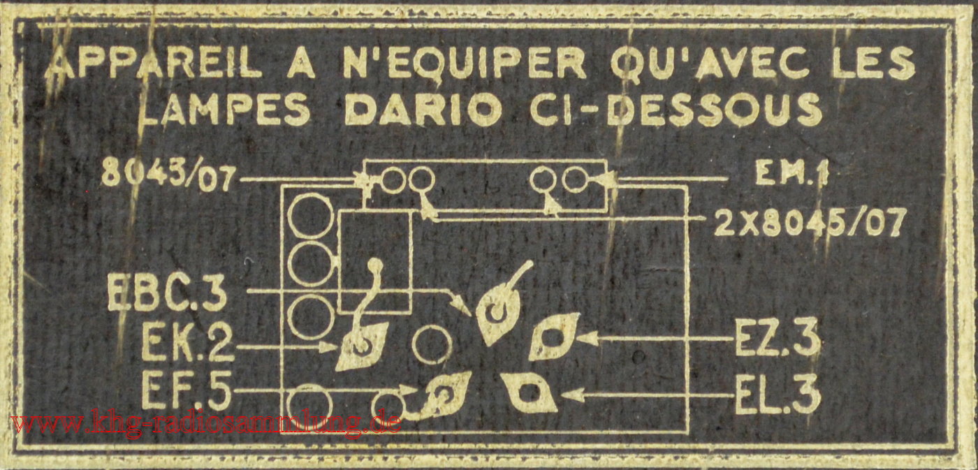 Röhren im Gerät / Tubes in the device / Lampes dans l'appareil / Tubos en el dispositivo: EK2, EF9, EBC3, EL3N, EZ4, EM4