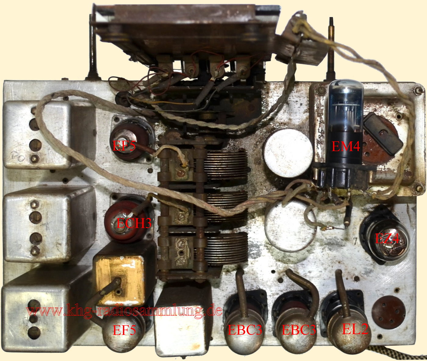 Röhren im Gerät / Tubes in the device / Lampes dans l'appareil / Tubos en el dispositivo: EF5, ECH3, EF5, EBC3, EBC3, EL2, EZ4, EM4