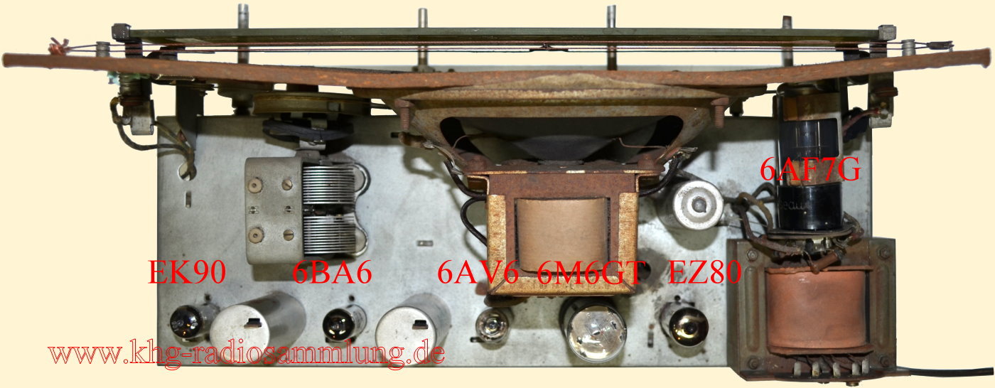 Röhren im Gerät / Tubes in the device / Lampes dans l'appareil / Tubos en el dispositivo: EK90, 6BA6, 6AV6, 6M6GT, EZ80, 6AF7G