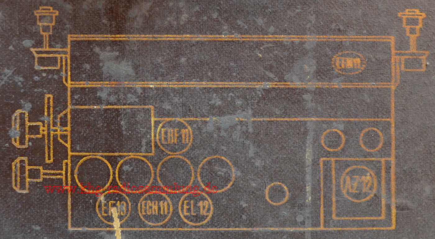 Röhren im Gerät / Tubes in the device / Lampes dans l'appareil / Tubos en el dispositivo: EF13 ?, ECH11, EBF11, EL12, AZ11, EFM11