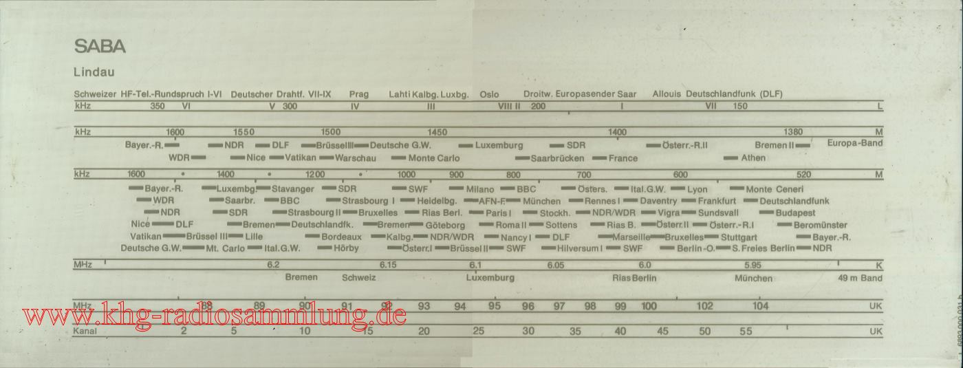 LW, 2 × MW, KW, UKW / LW, 2 × MW, SW, FM / GO, 2 × PO, OC, FM / OL, 2 × OM, OC, FM