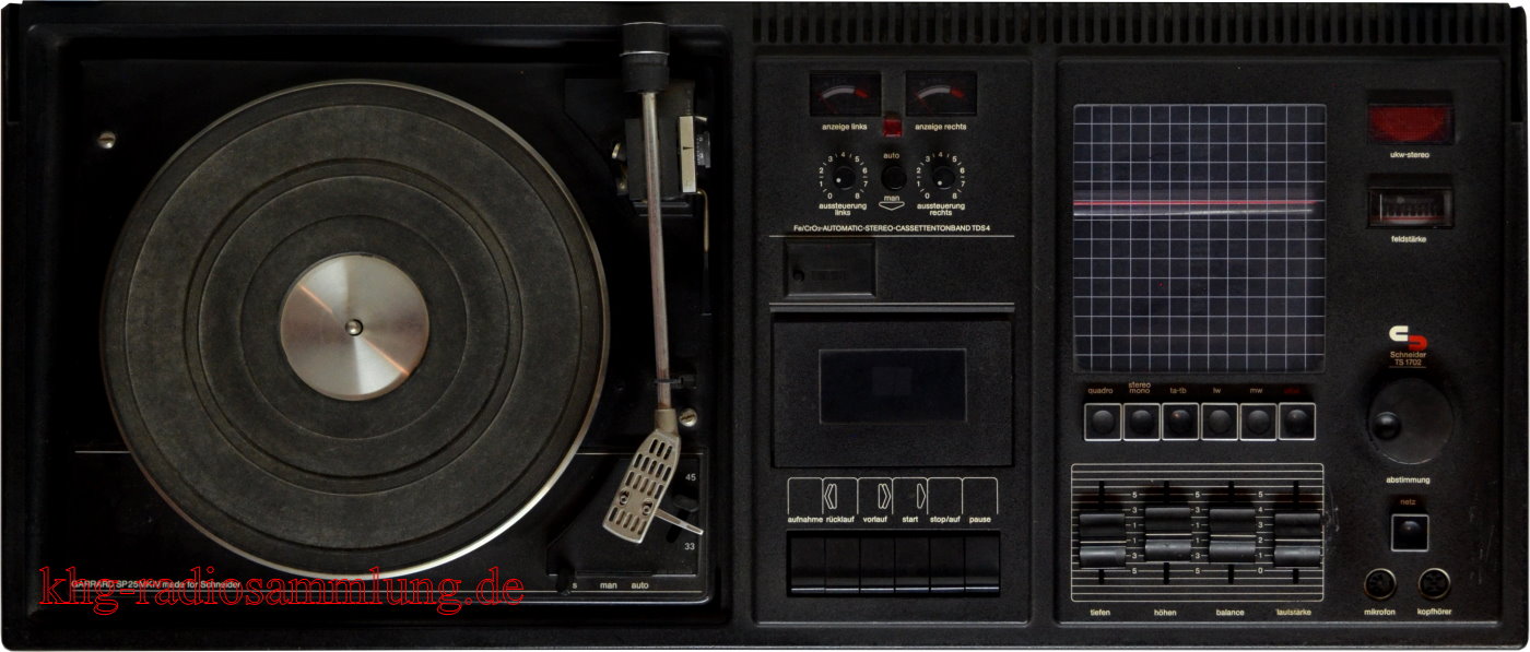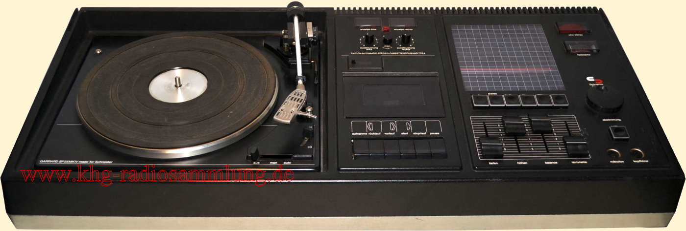 Composants: Radio: Schneider TS1702, Magnétophone: Schneider TDS 4, Tourne-disque: Garrard SP 25 MK IV