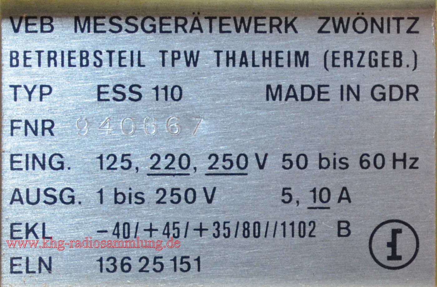 Im Gerät ist ein ESS 110 des VEB Messgerätewerks Zwönitz eingebaut.