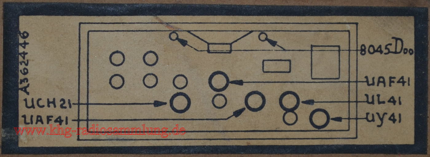Röhren im Gerät / Tubes in the device / Lampes dans l'appareil / Tubos en el dispositivo: UCH21, UAF42, UAF42, UL41, UY41