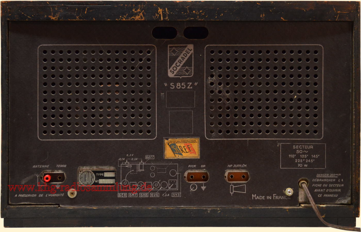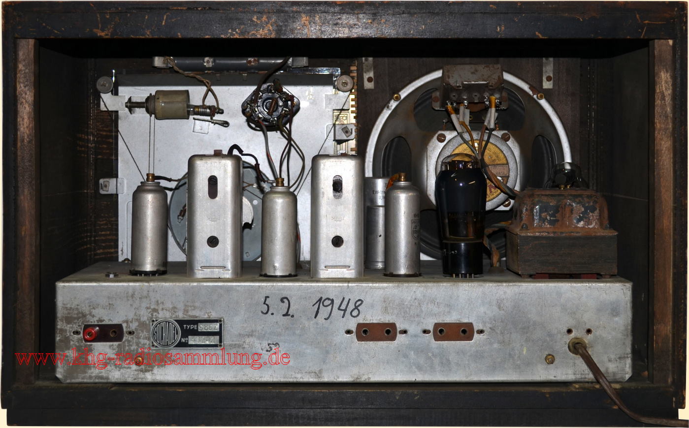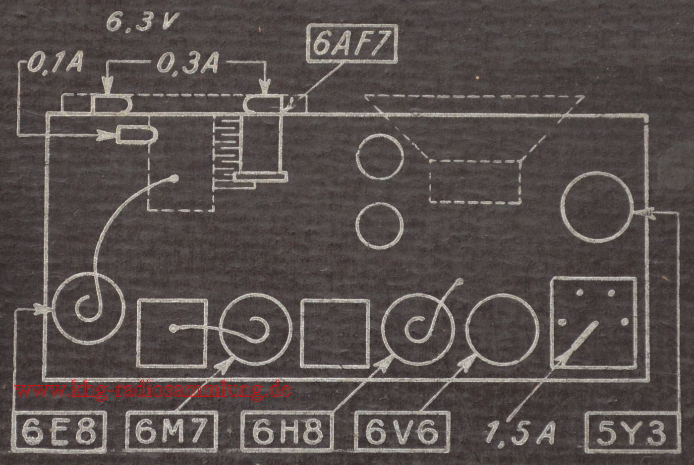 Röhren im Gerät / Tubes in the device / Lampes dans l'appareil / Tubos en el dispositivo: 6E8MG, 6M7MG, 6H8, 6V6, 5Y3GB, EM4