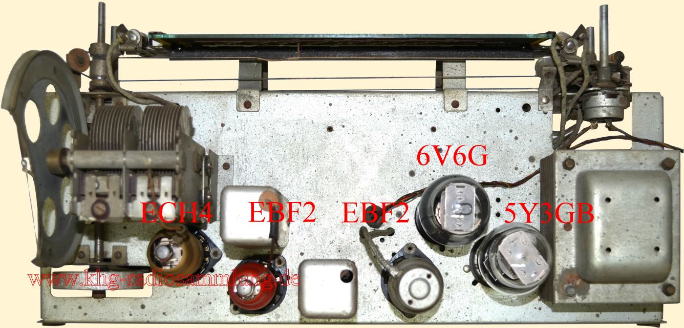 Röhren im Gerät / Tubes in the device / Lampes dans l'appareil / Tubos en el dispositivo: ECH4, EBF2, EBF2, 6V6G, 5Y3GB