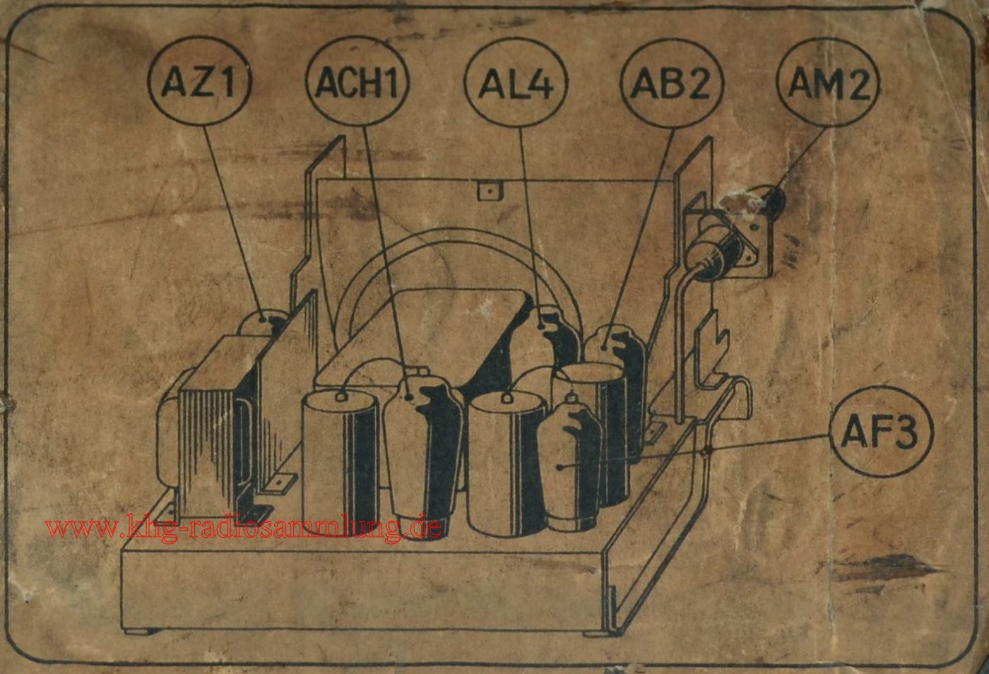 Röhren im Gerät / Tubes in the device / Lampes dans l'appareil / Tubos en el dispositivo: ACH1, AF3, AB2, EL3N, AZ1, AM2