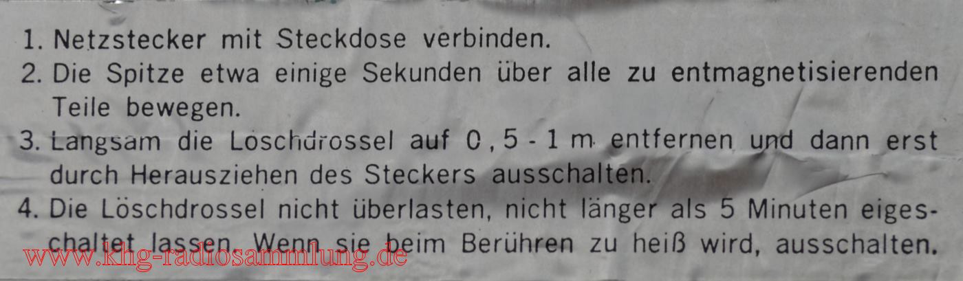 Elektrischer Tonkopf-Entmagnetisierer / Deck Head Degausser / Démagnétiseur electrique pour têtes de lecture / Desmagnetizador de cabezal de cubierta