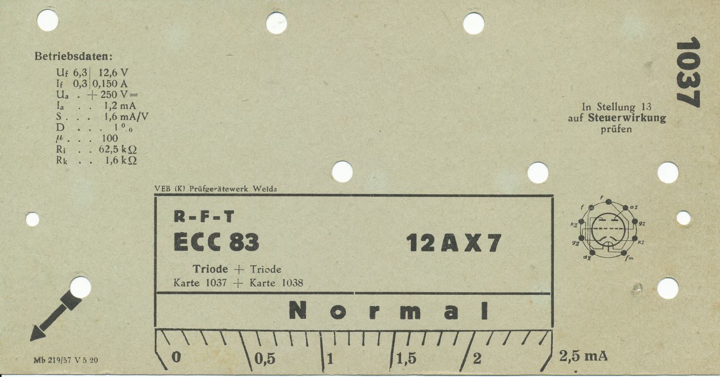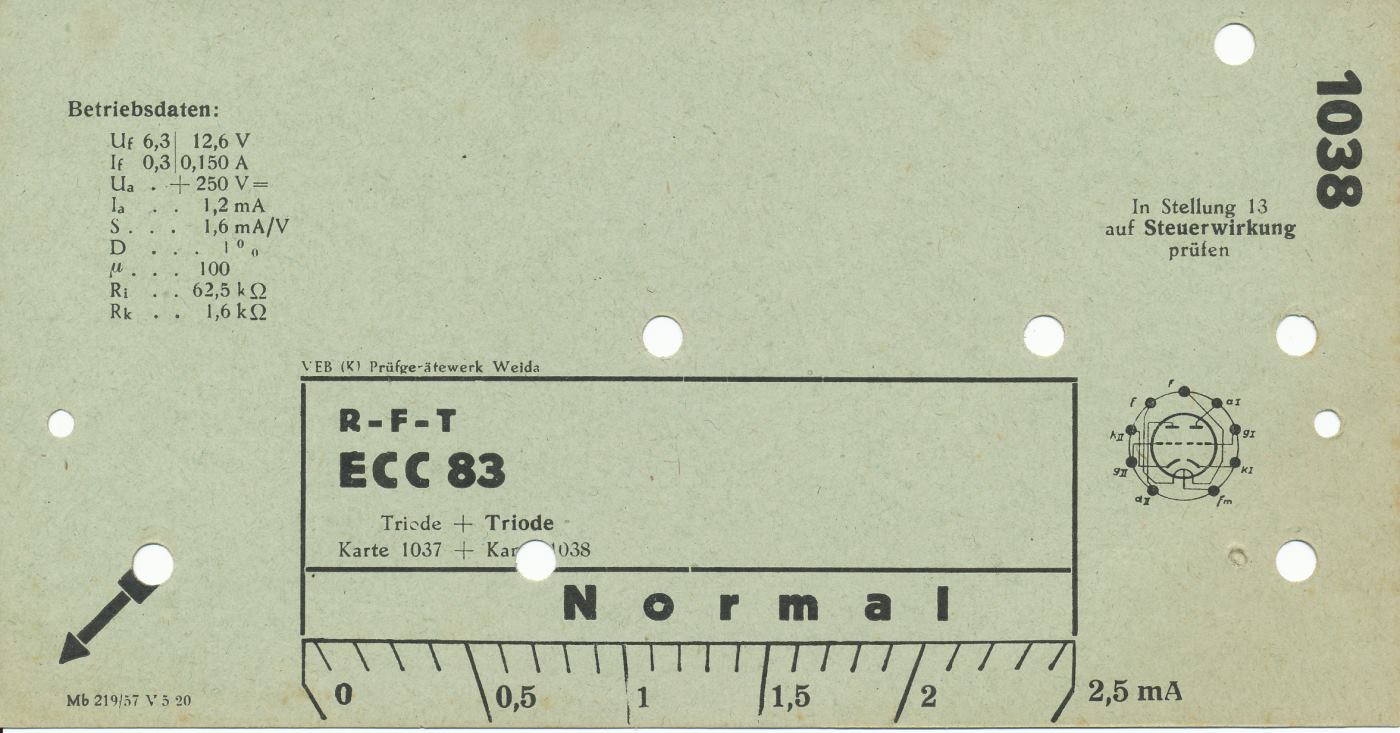 Triode R: Ua = 250 V; Ia = 1,2 mA
