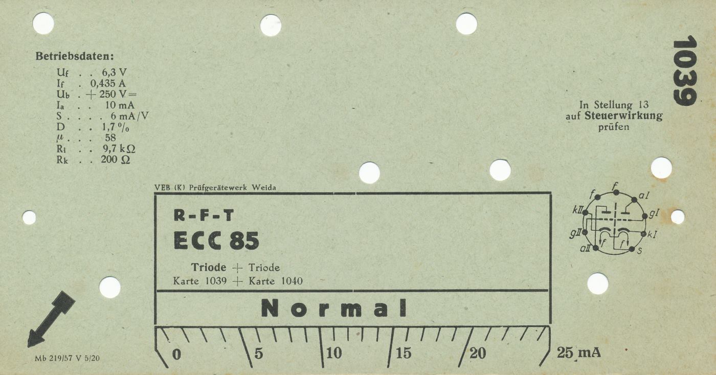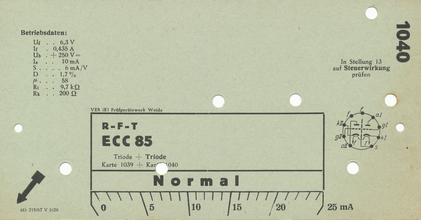 Triode II: Ua = 250 V; Ia = 5,3 mA