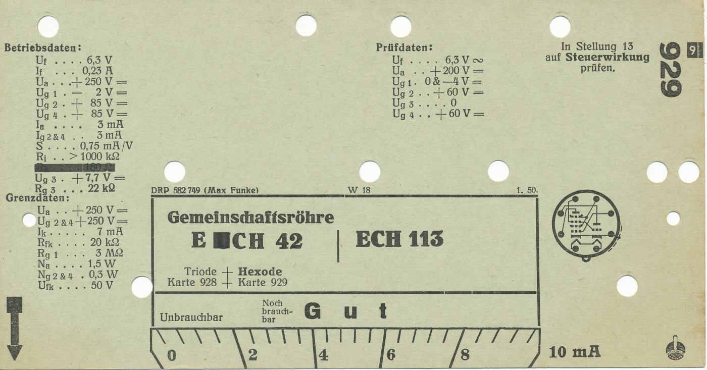 Triode: Ua = 250 V; Ia = 5,1 mA