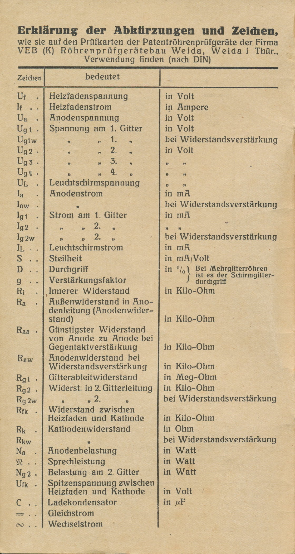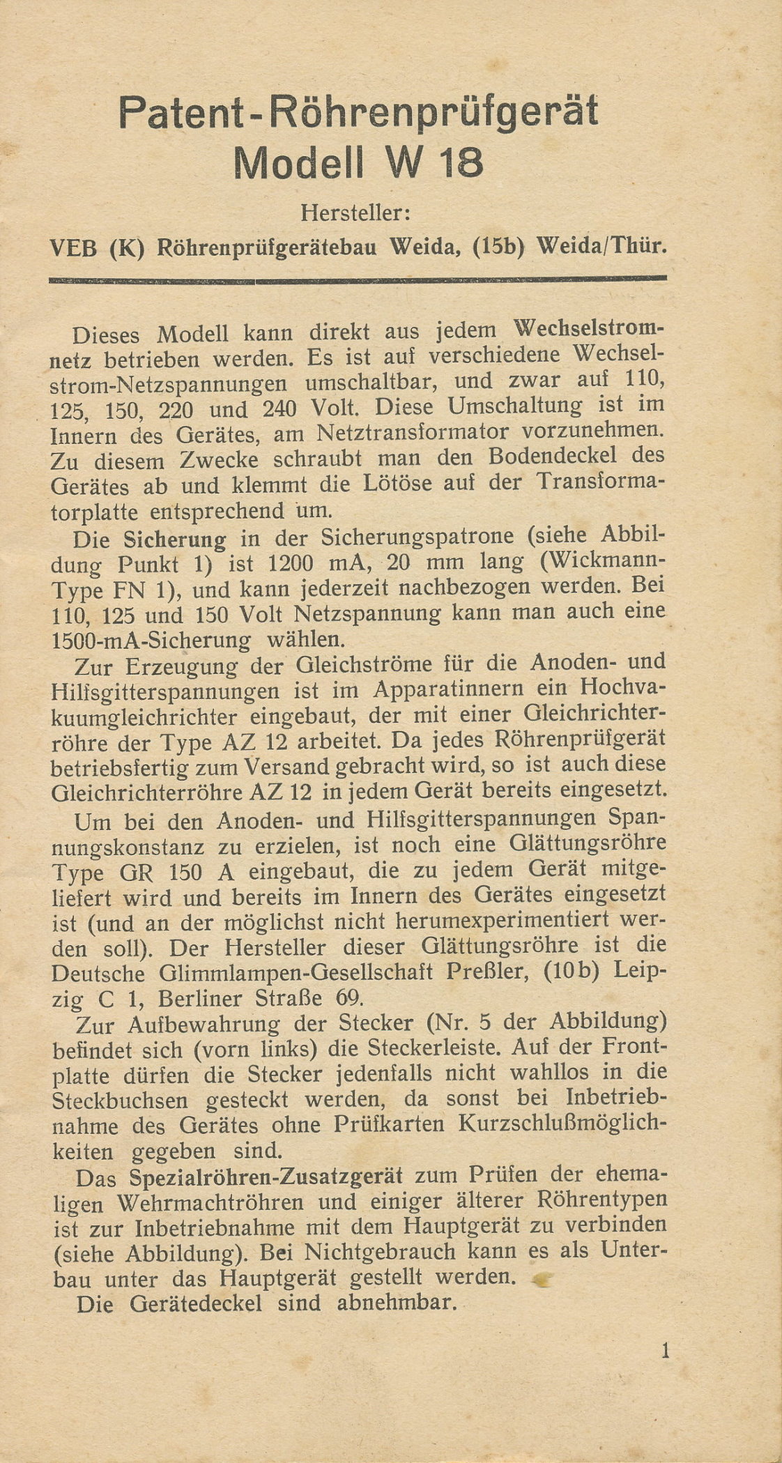 VEB - Patent-Röhrenprüfgerät W18 - 1956