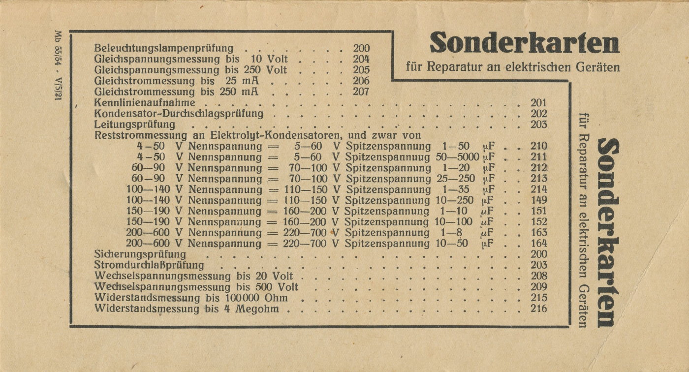 Letztes Bild / last image / dernière image / última imagen: Zusatz-Sockelfeld Röhrenprüfgerät W18